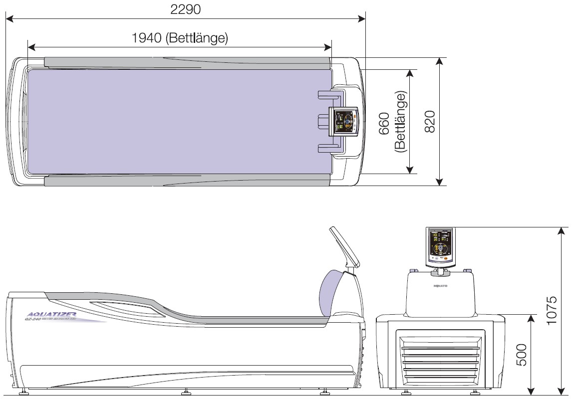 Diese Liege ermöglicht die Applikation einer transtextilen, kontaktlosen Massage mithilfe von Wasserdruck.
